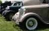 The PD used the same body and engine but used the larger Dodge frame to extend the wheel base. New front fenders, hood and radiator shell were then used to finish off the design. This front sheet metal redesign moved the radiator filler cap to outside the hood. This was the last year that Plymouth had an external The PD's grill was more vertical than the PC and it wasThe radiator shell was painted (except for a small plated bead around the grill) while the earlier PC had a plated radiator shell. the photo linked to by this thumbnail the PC in the foreground has incorrect wheels and tires and the PD behind it has an incorrectlyBut you can see the difference in the slope of the radiator shell and grill and the slant of the hood louvers. The "De Luxe Six" (PD) model had the same engine as the Standard Six (PCXX). Like the earlier PC, the PD was equipped with a 4.375:1 rear end while the PCXX was equipped with a 4.11:1 rear. I presume that this was to give the PD better acceleration for the performance conscious and