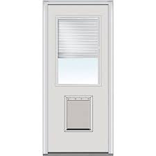 Flush Painted Steel Prehung Front Door with No Brickmold in Vinyl Frame Premium 6-Panel Primed Steel Prehung Front Door with Brickmold Flush Painted Steel Prehung Front Door with No Brickmold 6-Panel Painted Steel Prehung Front Door with No Brickmold 33.5 in. x 81.75 in. Heirloom Master Decorative Glass Full Lite Painted Majestic Steel Exterior DoorCraftsman 6-Lite Painted Premium Steel Prehung Front Door with BrickmouldEvelyn Diamond 4 Lite Painted White Steel Prehung Front DoorMaster Nouveau Decorative Glass Segmented 1/4 Lite 4 Panel Painted Majestic Steel Exterior Door New (1) from $723.79 Specifications for this item National Door Company EFSF684BLFS28L Internal Mini Blinds 1/2 Lite with Pet Door Fiberglass Smooth 32" x 80" Prehung Left Hand Entry Door Door is NOT for Commercial Use, and Primed Shown Primed White. The primed white composite frame width is 4-9/16", and this door unit is a Left hand In-Swing The door component is pre-drilled for 2-1/8" entry and deadbolt locks (locks sold separately)
