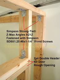 Measure garage door opening width and height. This determines the size of door needed, and the rough opening should be the same size as the door. Measure the clearance (side room) on the left and right side of the garage door opening. There needs to be at least 3-3/4" clearance on either side to accommodate the installation of the vertical track for standard extension spring and torsion spring systems. Specialized spring systems may require more side room.