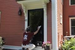 There are two screws that hold this strike plate in place. Take them out, mark the new position for the strike plate, then fill the old holes as described above, using wood splints dipped into glue. Wait till this glue hardens, then trim excess wood off and drill your new pilot holes for the screws so the strike plate will be in the proper position. The mortise or recess in the wood will probably have to be enlarged slightly, but this can be done by using a small sharp chisel. Answering the Mail Q . What is the best way to get paint spots off a slate-covered patio? - S.G., Scarsdale, N.Y. If the spots are not too large, or too numerous, you can probably get them off by rubbing with fine steel wool - but try this first in an inconspicous place because some types of slate turn quite a bit lighter when rubbed this way. Otherwise you can soften them up with acetone, then wipe them off, but avoid rubbing this around or you may just spread the stains. In line with the suggestion made in one of your recent columns, I washed the outside siding on my house to see if a paint job was really necessary.
