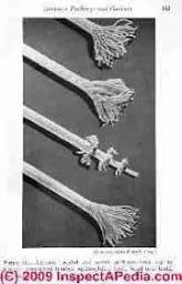 Breathing in asbestos fibres can cause serious diseases including mesothelioma, a cancer which affects the lining of the lungs and the lining surrounding the lower digestive tract; and asbestosis: a serious scarring condition of the lung that normally occurs after heavy exposure to asbestos over many years. The condition can cause progressive shortness of breath and in severe cases can be fatal. Where is asbestos in the home? You may find loose-fill asbestos in lofts, cavity walls and under floorboards. It’s a loose, fluffy insulation material which looks like candyfloss. It can be blue-grey or whitish in colour and is probably the most dangerous asbestos-containing material. If disturbed, it can release many asbestos fibres into the air. Lagging and insulation around piping and boilers can also contain a type of asbestos which is fibrous, flakes and powders easily and is often painted in different colours, making it more difficult to detect. Asbestos can also be found in spray coatings on the undersides of roofs and floors, originally used for fire protection.