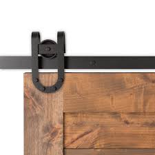 Horseshoe Barn Door Hardware All Barn Door Hardware is Powder Coated. The classic Horseshoe Barn Door Hardware embodies the look and feel of a rustic barn door, yet its simplicity maintains a clean look fit for any contemporary home. Clearance needed above top of door: 5 3/4″. Weight limit is 400lbs. Select the length of your Track and if you would like the track pre-drilled. For FAST and EASY Install. Track comes installed on a header board. (additional lead time may be required) Each set of barn door hardware ordered includes the following: Weight Limit : 400lbs The Horseshoe Barn Door Hardware is manufactured from a 3/16” sheet of metal, a laser powered CNC machine then expertly cuts out the hangers and holes, before it enters final production where the edges are smoothed, the hanger rounded, and the last plates welded. The Horseshoe barn door hardware is a classic hanger design that has been used for over a century. Initially used on barns with large sliding barn doors, the horseshoe design was used for its strength holding capacity, and for the familiar and convenient design.