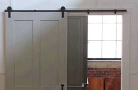 Wall Mount Door Guide This guide is an effective option if it is better suited to install the guide into the baseboard rather than the floor. It is adjustable so you ensure the best fit for your door. Use this guide for a smooth rolling door guide that requires no groove in the door. It also adds an industrial style as the wheel is visible while door slides. The track length should be twice the width of the door itself. If needed, note that tracks less than twice the width may prevent the door from opening fully, and tracks longer will allow the door to slide further past the opening. Pre-Drilled holes with have standard 16″ on center spacing. This is ideal for installations with a full header or backing in the wall. If you are attaching into studs, you will want to drill on site to ensure you’re holes match up. All hardware sets include 2 straps with wheels and all the hardware to hang one door. Sometimes more doors are better than one, and multiple doors will slide on the same track.