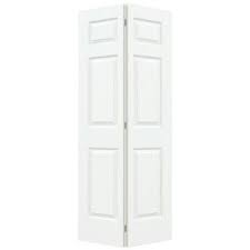 Are these doors actually white? The doors have a white primer finish. They would need to be painted. Is there any way to lock this to prevent access to a room? I want to use it in my bathroom. Yes, just google " how to lock by-folding doors" and you get a lot of suggestions. Or you could just go to the local Home Depot and check. What is the rough opening size for a 3 0 x 6 8 bifold door The rough opening would need to be 36-1/2"x 81-1/2" is $52 for one door or for two. each closet would need 4 doors altogetherit is bi-fold so two doors make up 30" width. My opening is 57" wide. Would these doors fitPer the on line installation instructions for Store SKU #311579, "Doors may be trimmed 1/4" on each side if necessary." However you could order 2 - Model # 7602880100 or Internet #20484839, which is only available in white. These are 28" wide, after you install them this would leave you with less then a 1/2" gap on each side, if you feel it is to much you could use some wood trim to hide the gap.