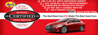 you're in the right spot! inventories online or come to the dealership. you will find your favorite Toyota models at competitive prices. test drive at our greater Victorville Toyota dealership in the new Camry, Corolla, Prius, Tundra, HighlanderValley Hi Toyota sales people are ready to answer your questions about a particular model and find the Toyota in Victorville that meets all of your expectations.Need a car loan? Toyota has a great finance team that will help you get a car loan in Victorville to put you in the new Toyota or used car you want. We make the buying process easy by working with numerous banks, so there will be no need to go from bank to bank. Check out the Finance page to see all of our financing to set up shop and take care of an oil change or other car repair thisValley Hi Toyota has all of the certified Toyota car you need to do it yourself, including the oil filter. If you need to change the car battery, we can hook you up with that too - any and all