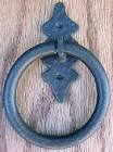 This ring handle is a beautiful pull handle for your gate or garage door. Oval Mid-Century Modern Lever HandleWrought Iron Smooth Ring Pull Contemporary Lever Handle, sold as each. Smooth Ring Pull Available in 4 Finishes (shown in Flat Black) Dimensions: 5-1/2" dia x 7" high x 1" deep. Finish Options: Flat Black, Brown Rust, Red Rust, Dark Bronze. Nero Contemporary Lever HandleAntique Ring Handle Contemporary Lever Pull Handle, sold as each. A cast aluminum Antique Ring Pull measuring 1 7/8" Diameter Ring on a 2" x 2 1/2" Plate. Can be used on a garden gate, carriage house door, garage door, or shutters! Traditional Ring Pull HandleArco Grande Extra Large Iron Door Pull Handle This Dummy Handle is produced of rust-resistant aluminum for adorning garage doors and carriage house doors. Authentic, Hand-Made Rustic Iron Decor. Available in four finishes, Black, Rust Brown, Red Rust, and Dark Bronze. Asian Inspired Ring HandleCuadrado Extra Large Iron Door Pull Handle