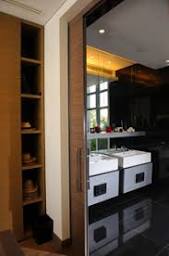 “This will be vastly cheaper for the same spec, although labour costs may be higher as the work is a little more time consuming. The finished wall thickness will be kept to a minimum this way too.” The Enigma pocket door is available in three different systems, visible, concealed and shadow gapped. These different styles ensure that the door will fit seamlessly into any scheme, POA, from Selo Sticking to a standard door width and thickness is a good idea for keeping a hold on costs, as non-standard sizes may require a bespoke option. Bear in mind that the weight of your door will also have a bearing. Lightweight hollowcore doors are usually suitable for all systems, but this may not always be the case with some heavy solid doors. “Our system can sustain a load of 60kg, which will take a standard solid door,” explains Philip Jones of PC Henderson. Eclisse can provide systems to support a weight up to 120kg on request, for very heavyweight doors. You’ll usually have to specify hardware as an extra too.