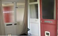 What are the merits and costs of upgrading an old single-glazed (front) door? In our 40-year-old house the only single-glazed area is the door and side-panel, and the blanks are a single sheet of plywood, and thus very weak from an insulation point of view. Also we had a cat-flap in the door for our cat Sidney, but as he's no longer with us, that leaky portal is no longer needed. (We passed on the old cat-flaps via FreeCycle.) We had mitigated these factors with a door curtain across the entire frame, a nylon-brush draught excluder on the letter-box, and keeping the corridor/hall behind the door mostly unheated using using a TRV (Thermostatic Radiator Valve) usually turned right down. (We'll be keeping the door curtain and the reduced hall temperature, and whatever new door we put in will have an integral letterbox draught excluder.) As part of my 2009 plans to cut heating requirements (improve insulation) to the tune of 2MWh per year including a cold winter