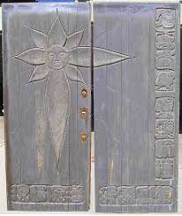 A pair of old custom built solid wood doors needing refinishing. A custom wood door is defined by its uniqueness and these doors are certainly that. When I originally looked at these custom entry doors I envisioned a lot of work in order for a new finish to be applied. After talking with the homeowner, I came to an understanding that they needed a very good finish at the best possible price. The picture is a good representation of the overall condition of these custom entry doors. Many layers of different finishes had turned a grayish black color over time. The homeowner said they were beautiful 30 years ago. Unfortunately these custom entry doors have not been properly maintained since. A plan was needed. Refinishing any custom entry doors can be time consuming and expensive. The expense was a problem for the homeowner and the time was a problem for me. The plan for refinishing these unique wood doors, Aggressively sand off the finish. This needed to be as fast as possible.