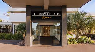 Skip to other pages in this section. Skip to top level navigation. New Plymouth accommodation on the doorstep of the CBD The Devon Hotel New Plymouth offers you an extension of everything that is great about the Taranaki region. Your hosts Peter and Rosemary will ensure you enjoy warm hospitality, comfortable rooms, delicious food and never have a shortage of things to do. When not exploring Taranaki, you can unwind in our heated outdoor pool or in The Rocks Lounge, dine in Marbles Restaurant, or relax and enjoy the many features in your luxurious suites or studios. New Plymouth has much to see and do, and plenty of sunshine to do it in. Outdoor enthusiasts will love the city’s many beautiful parks, the coastal walkway and the trails on Mount Taranaki. As for culture, you can’t beat the Puke Ariki Museum and Heritage Centre, the Govett-Brewster Art Gallery, Len Lye Centre, or the many great annual festivals the region hosts each year. The hotel also boasts a wide range of conference facilities and services to cater to groups from five to 550.