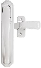 Ideal Security Inc. SKGLWH Storm Door Lever Handle Set, White Ideal Security Inc. SK1215BB Deluxe Storm Door Handle Set with Deadbolt, Brass E-Coat The DX pull handle is the easiest and most natural way to open a screen or storm door. No buttons to push or levers to turn, simply pull the handle and the door opens. Elegant and functional, this handle set will add convenience and style to any aluminum, wood or vinyl storm or screen door. The inside latch features a night latch to lock the door from the inside only. For added security, an interior deadbolt (SK5) or a keyed deadlock (SK703) are available. The set includes the outside handle, an inside latch and all installation accessories for a quick installation. This handle will replace all storm and screen door handles that have 1-3/4 in. distance between the screw posts. The set will fit doors 1 in. to 2-1/8” thick. You may need to drill one small hole on the outside face of the door to secure the backplate. Ideal Security has been supplying quality products since 1956.