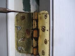This type of lock cannot be slipped, forced with a wrench, or pried open. Another type of rim lock utilizes a large, horizontal, sliding bar. It is less expensive than other types but equally effective. However, both of these locks are only as strong as the screws that attaché them to the doorframe. The strike plates on all exterior doors should be anchored with screws 2 to 3 inches long so they reach well into the stud. This will make it extremely difficult for a burglar to kick the door open. Many homes have doors which open to the outside, exposing the hinge pins. Despite your good strong lock, the burglar can remove the pins and lift the door from the frame. When the door is closed the hinge pins may be removed, but the door will remain firmly in place. If the hinge screws do not line up with each other, do the following: Drive the pin into the frame just below the hinge. Drill a hole in the edge of the door. The hole should be larger in diameter than the pin.