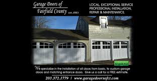which include trim, sheet rocking, resizing of openings and other varous jobs. Our company's ethics are best summed up with the motto, "We'll get to work on your door as if it were our own." We are currently Angie's List Best Garage Door Company, three years running! Is the founding member with over 4 decades in the business. Garage Doors of Fairfield County Originally was Cadra's Garage Door Company, which has now been re-established as Garage doors of Fairfield County. Joined in the Family business in 2012 after successfully working in the construction business for a number of years.For best results, please add a location.Precision Garage Door of Fairfield CountyProviding Repair, New Garage Door Installation & OpenersWe Fix More Than 1000 Garage Doors Everyday!Locally Owned - Nationally Backed Free estimates on new garage doorsOld doors removed at no extra costChoices include Vinyl Garage Doors, Steel Garage Doors and Wood Carriage House Style Garage DoorsLifetime Warranty Available