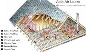 Electrical, plumbing and HVAC contractors use your attic to conceal the wires, pipes and ducts that comprise the mechanical systems in your home. During the construction of your home, they drill and cut holes through the walls to run these pipes and wires. Follow the interior and exterior walls and look for the holes. You'll also want to look for chimneys, furnace flues and lights. This is where most of your largest leaks can be found. Looking up at the ceiling underneath your attic should help you find the holes. Before you go up into the attic, try to get familiar with your home's layout or just sketch out a floor plan map. This helps you keep your bearings as you ascend into the attic. While you are in the attic, carefully move over to the areas you've identified and pull back the insulation. If the insulation is black and dirty, you know you've definitely found an air leak. As the warm air rises through air leaks in your ceiling it carries dust which is filtered out by your insulation.