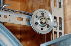 Extension Spring Pulley Replacement One major cause of failure for garage doors using extension springs is that the pulleys wear out. Usually the ball bearings break down, causing the pulley to scrape against the track angle, or the rivets fail and the pulley splits as in the picture above, causing the door cable to stick. When the owner of this garage door called us she said, "The garage door opens part way and stops." This is one of many symptoms caused by worn pulleys. This particular door would not sit evenly on the garage floor. When we tried to open it the garage door jammed. Generally, when pulleys fail, the garage door does not open and close properly. The garage door closes part way and reopens. The door binds and sticks, and scraping sounds often accompany the other symptoms. Some times the first symptom is a frayed or broken cable, or a dangling extension spring, or a dent in the car. In my 30 years servicing garage doors I have found these symptoms to be some of the more challenging for do-it-yourselfers to diagnose.