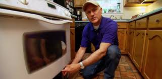 Slide the wire and cleaning wipe up through the slots in the bottom of the oven door. Move the cleaning wipe back and forth between the glass panes, bending the wire as needed, to clean the glass. Move the wire to each of the slots in the bottom of the oven door to clean all the glass. Watch this video to find out more. How to Clean Stainless Steel Appliances (article) How to Clean Dishwasher Spray Arms (video) Cleaning a Garbage Disposal (video) Joe Truini: If you’ve cleaned the inside and the outside of your glass oven door and you’re still seeing streaks, it’s because there might be food dripping down on the inside between the panes of glass, as you see here. This looks like, this streak looks like it’s on the outside, but it’s not. It’s actually on the inner surface of the outer pane, and that other streak is on the inside surface of the inner pane. So, there’s no way to reach it from the outside the door. So, what do you do?