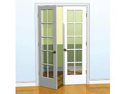 Standard door sizes start at 1 foot 6 inches and are offered at 2-inch increases to 3-feet wide. Fitting with standard door openings, stock door heights are 6 feet 8 inches; If you live in an older house or have an unusual door opening, there are manufacturers who offer custom sizes. Doors are also available in a variety of colors. Blinds and shades are commonly used, just as on windows to filter light and add privacy to a space. The most important part of installing a French door is measuring the radius of the swing. Make sure there are no furnishings planned for the area within the door's swing path. The next thing to check is the jamb depth of the opening, and plan to purchase a door that will fit inside that depth. If you have a newer home, you will probably have an easy fit with a standard-sized French door. Older homes have non-standard sized openings, so you may need to install a new jamb inside the opening to fit the French doors of your choice. For standard door frames, French doors also are offered in pre-hung kits, making installation much easier and more straightforward.