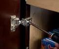 Video Playback Not Supported How to Adjust Concealed Kitchen Cabinet Hinges If your kitchen cabinets have adjustable hinges, you may need to tweak them from time to time so the doors will close properly. Watch this video to find out which screws to turn to achieve the perfect fit on your cabinet doors. Videos You May Like Replacing Kitchen Cabinet Hardware How to Install Kitchen Cabinet Doors An integrated fridge is one that blends seamlessly into your kitchen by hiding the ugly appliance behind a door that matches the other cabinets. It's an appealing design choice for some kitchens, but a permanent one that should be considered carefully before proceeding. Once you have decided to go down the integrated route, if you change your mind and remove the outer door to expose the fridge, the fridge door itself will be blighted by marks. If you do decide that the integrated look is for you, these step-by-step instructions can help you install the covering that will hide your refrigerator.