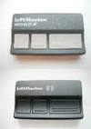 The button is usually next to the area where the floppy antenna is connected to the motor head. With Genie it is most often behind the light lens, and an indicator light flashes red when pressed. With Sears or Liftmaster (Chamberlain) it is near, or part of, the terminal screw board, and is a red, green or purple square button with a green, amber or purple indicator light. Press this learn button momentarily. The indicator light will turn on and blink if Genie or otherwise stay lit. For Genie systems, go back to the in-car transmitter button you programmed and press this button 3 or 4 times, or until the door starts moving. This should set your in-car transmitter to your garage door opener. For Liftmaster, Sears, or Linear Megacode press and hold the in-car button you programmed until the garage opener light flashes. Your in-car is now programmed to operate your door. Programming a Fixed-Code Device (Majority of units made prior to 1996) These devices have internal dip-switches located near the battery of your remote.