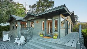 The dining area flows into a slender galley-style kitchen that features a cushioned built-in window seat, walnut or perhaps teak cabinets, quotidian beige speckled granite counter tops and average quality stainless steel appliances. The upper level master bedroom isn’t particularly roomy but does offer French doors that open to a narrow deck with stunning sylvan canyon views and an en suite bathroom with striking, vintage-style plum-colored tile work. One of the two guest or family bedrooms on the bungalow’s lower level was outfitted as a fitness room and shares a hall bathroom that, like the master bathroom, is lined with plum-colored ceramic tiles. The property’s gardens and outdoor living areas were gussied up by the couple, according to a 2015 article in People magazine, and include several decks for al fresco dining and lounging, a gravel patio with fire pit for roasting après dinner marshmallows and, in addition to several loquat and olive trees, a variety of citrus trees including grapefruit, orange, lime, and lemon.