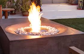 Gas-Fired Fire pits can be enjoyed in places that you can not use wood-burning Fire pits, some of the places that your Fire pit should be gas-fired is when the Fire pit is located under a pergola or any other structure. Gas-fired Fire pits are also popular on patios close up to the home, and in area next to the pool, hot tubs and other area where wood-burning would not be practical. Gas Fire pits can burn natural gas or propane and this can vary the price of installation, with natural gas you will need to run a gas line out from your house to the area that you want to place your Fire pit, and if that is in the middle of the patio it would be wise to have the gas line in place before the patio is built. If your patio is already in place there are several ways to provide gas lines to it. One way is to use propane instead of natural gas, hiding the propane bottle close by, the main draw back to this is having to change out propane bottle when they run out. If you have natural gas for your Fire pit and your patio is in place already we can also cut a hole in the patio and bore under the patio to it.