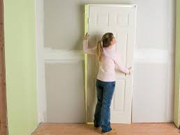 There are a few terms that will also be used that are a part of your house. These are the header (the part of the wall framing above the door), the king stud (the stud in the wall that supports the header), and the trimmer (the stud in the wall that is next to the jamb). Determine if the floor is level where the door will be hung. The pre-hung door will come with long sides on the frame. This will allow you to cut each side of the door frame according to how level the floor is. Cut the sides of the door frame if the floor isn't even. If the floor isn't level, one side of the frame will be shorter than the other to fit with the floor. This will not be noticeable after the door is in place. Make sure the rough opening is plumb. If it's not, install wooden shims between the rough opening and the door frame. A shim is a thin, tapered piece of wood that is used to fill in the gaps in the door frame. Using shims avoids the necessity for rebuilding the door opening to fit the pre-hung door.