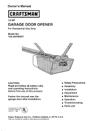 Garage Door & Opener Parts Craftsman 1/2 HP GARAGE DOOR OPENER Manual Model 1395364812 CRAFTSMAN 1/2 HP GARAGE DOOR OPENER - Manuals and Guides Top Parts needed for this model are: Garage Door Opener Gear and Sprocket Assembly Garage Door Opener Drive and Worm Gear Kit Garage Door Opener Light Socket Garage Door Opener Safety Sensor Kit View Cart and Checkout Click a model number to find parts at Sears PartsDirect Each of the several models of the Craftsman 1/2 HP garage door opener is operated by a chain drive. Most of the features and functions on each model work in the same way. When problems arise, following some basic troubleshooting steps will help diagnose the cause of the problem. The owner can resolve most everyday issues with Craftsman 1/2 HP garage door openers. Make sure the outlet has power. Plug another device into the outlet to make sure it is working. Check the fuse box or circuit breakers. If fuses are blown, replace them.