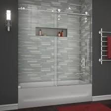 Save up to 20% on Valid 1/12 - 3/23 Consider the size, spacing, and fixtures of your bathroom, as well as the desired look when choosing a door type. Sliding doors open on a track, not in or out. Pivot or hinge doors, open into or out of the shower. A stationary door, creating a walk-in shower look. Choosing the right frame is an important element to both the functionality and look of your shower. Show off your shower tile & get a designer look. At least one edge will have a frame or track. All edges are framed in this most economical option. The shower door you select must fit your shower's base shape and wall configuration. We have a shower door that will fit any alcove space. Save space with a beautiful corner shower door. Keep your tub with a quality & stylish shower door. Consider your privacy and design preferences when choosing a glass style. Clear doors allow full transparency into the shower. Frosted doors add privacy to your shower.
