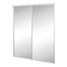 72 in. x 96 in. Concord Mirrored White Aluminum Interior Sliding Door Provide functionality and beauty to your passageways with the Concord 72 in. x 96 in. Mirrored Bypass Door with White Aluminum Frame. This bypass door is designed to help conserve space where a traditional swinging door is impractical. This painted aluminum door also features a mirror to provide uninterrupted, full-length reflections.Deep rust-proof aluminum Ultraglide felt-lined top channel for smoother, quieter operation Bottom rolled 1-1/2 in. ball bearing wheels on rust-proof and jump-proof aluminum track for durability and smoother operation Heavy duty rust-proof aluminum tubular side rails for added strength Integrated handles for a sleek, unobstructed appearance Safety-backed Duraflect copper-free mirrors have a 10-year warranty against discoloration and black edge spotting Door Size (WxH) in.: What is the width (not length) of the bottom track?The bottom track is 3" wide.