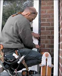 car glass repair columbia scThe homeowner cuts the plastic sheeting to fit the sliding glass door.