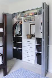 This small closet organizer makes the most of limited closet space. You can build it yourself with our tutorial by Rachel Pereira of Shades of Blue Interiors. Living in a small house has it’s challenges. It is especially compounded when you have children with lots of clothes and toys, and the rooms provide little closet space. My boys share a 10 x 11 ft. room, and their small closet was virtually useless for two years. It had sliding mirror doors, which made only half of the closet accessible at a time. Additionally, the inside was just a bunch of wire shelves that were not attached to the wall studs in some areas, so they sagged. The closet was in desperate need of a makeover, so I did just that. I started with the vision of having a center “dresser” of sorts with several drawers, and then shelves on either side, with a spot of hang clothes, and a long shelf on top of everything to hold things they don’t use on a day-to-day basis. The result is incredible. This is how we built the closet organizer.