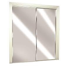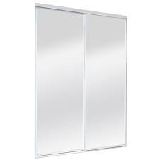Actual: 48-in x 80-in) Item # 201627 Model # 45004 Bypass door design conserves space where a swinging door is impractical, bottom roll Bright white steel frame construction Category II safety backed mirror Quick and easy installation Adjustable for out-of-square openings Package includes all hardware and fasteners Low rise bottom track for minimal floor obstruction Top and bottom track are prefinished to match door Mirrored doors provide uninterrupted, full-length reflectionsSmooth Flush Solid Core Primed MDF Interior Sliding Door With Trim ReliaBilt Off-White 3-Lite Frosted Glass Sliding Closet Interior Door (Common: 60-in x 80-in; Actual: 60-in x 78.68-in) Item # 449465 Model # 449418 White finish, with 3-lite tempered frosted glass High-quality paper wrap provides design and durability Dial-adjust roller eliminates the floor track, enhances look and makes adjustments simple 4mm tempered frosted glass provides strength, rigidity and a contemporary look