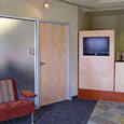 Hollow-core mahogany or masonite slab doors have been around for ages but today's door of choice is the popular hollow-core, two to six panel molded composite slab door. They are made of an outer wood frame and a molded Masonite ( hardboard) skin on front and back. The name hollow-core doesn't mean that the door is 100% hollow. The inside of older slab doors consists of glued in folded cardboard or thin wood slats which gives more strength to the door skins and provide an even door thickness. Newer hollow-core flush doors are filled with a high density fiberboard A solid block of wood is installed within a hollow-core door to accommodate the installation of the door's hardware. Solid-core doors were either solid wood or filled entirely with a low-density particle board. Solid-core flush doors (especially foam-core ones) are commonly used as exterior doors because they provide more insulation and strength. Molded two panel hollow-core masonite door with wood grain texture finish
