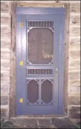 For Fall and Winter, optional Storm Panels convert Screen Doors into great looking Storm Doors, with extra comfort for you and your family!We handcraft each Door, including many quality features for at least a lifetime of use and enjoyment! Our custom sizes, custom design possibilities, choice of woods, shop-direct prices, prompt shipment, and small-town service are all guaranteed to please!The photo at left show Screen Door 7102 on a log home. Not only is this Door very inviting, but it lets the cool breezes inside. All our Doors can be used in either Screen or optional Storm mode. But there is a third way to use a Vintage door... Order your Door with only our optional tempered safety glass storm panels and use it as a unique Interior Glass Door!Hanging such Doors inside your home or business creates the special elegance only a glass Door can bestow, as they admit light between rooms with a grace and charm that�s difficult to achieve any other way. There's a subtle refinement to any room fortunate enough to have glass Doors, and your good taste will be recognized by all who visit!
