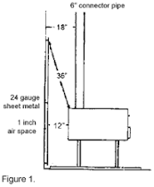 non-combustible protector mounted an inch or more away from a combustible wall to allow free circulation of air behind reduction is specified by NFPA and most codes. when required clearance with no protection is 36 inches, a 3 1/2-inch-thick masonry wall with ventilated air space used as a wall protector, reduces clearance by maximum of 66 percent, to 12 inches from the combustible wall. WOOD STOVES EVER BE INSTALLED LESS THAN 36 INCHES FROM COMBUSTIBLES?If a UL-listed stove has a heat shield attached, the clearance can be reduced as specified. Or build a heat shield to be mounted 1 inch off the wall on non-combustible spacers. To reduce the standard clearance to 12 inches, the heat shield should be of 28-gauge sheet metal, mounted off the floor to provide unrestricted circulation of air between shield and wall SHIELD DO I NEED? area within 36 inches of the wood stove should be covered as shown in Figure 2.